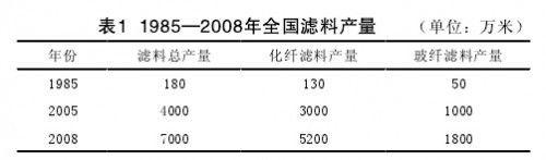 在濾料品種不斷創(chuàng)新的同時(shí),濾料的產(chǎn)量也在飛速發(fā)展。1985—2008年國內(nèi)濾料產(chǎn)量情況見表1。